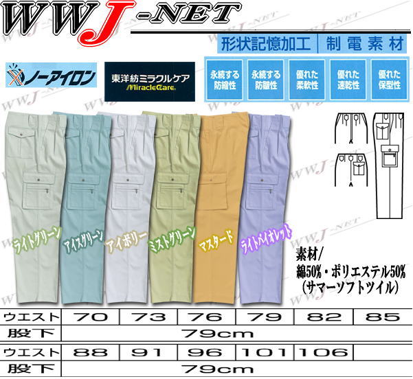 形状記憶加工がほどこされた、ノーアイロンでお手入れ簡単なワークウェア。