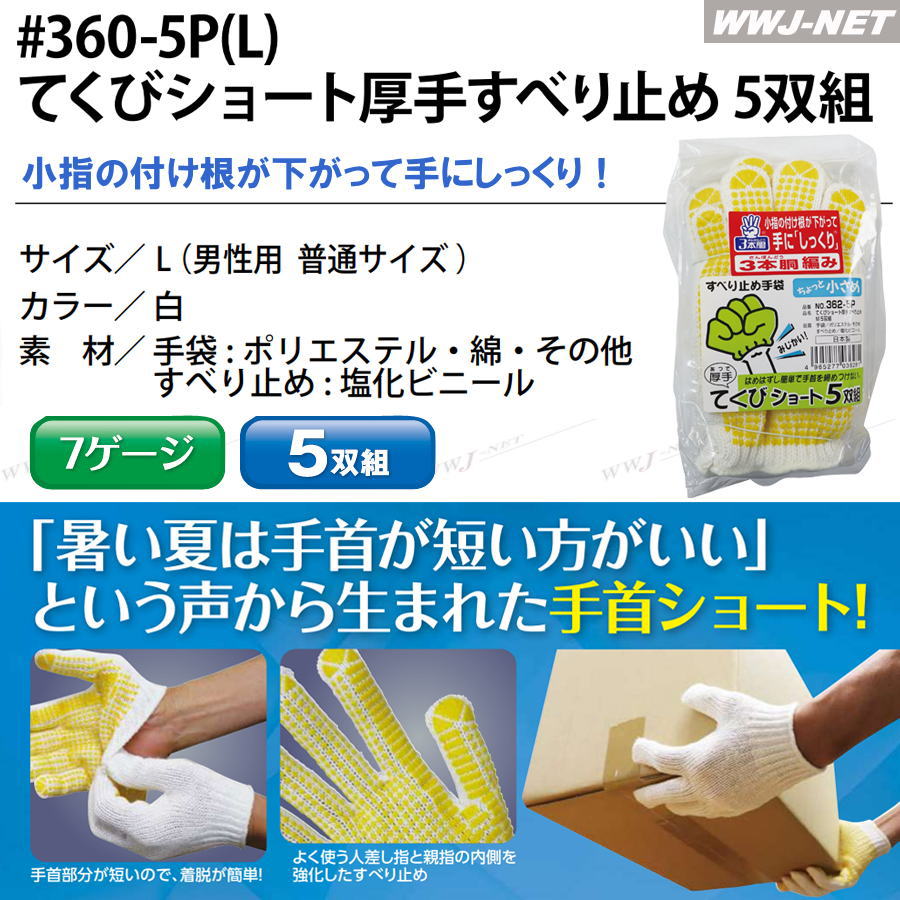 FT360-5P てくびショート厚手すべり止め 【5双組】 ft360-5p
