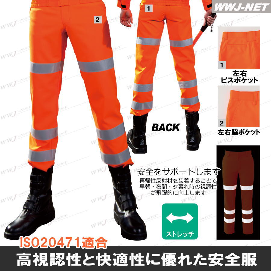 再帰性反射材を使用した、高視認性安全服のスラックス。