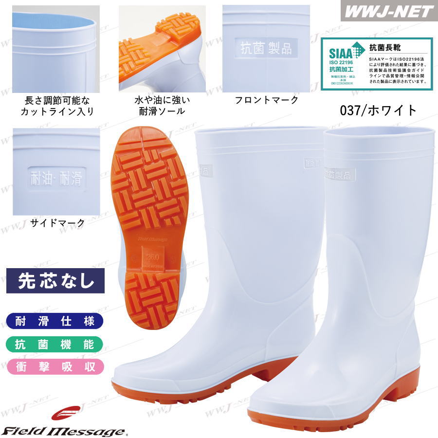 耐油(胴+靴底)、耐滑、抗菌、クッション性インソールを使用した高機能衛生長靴。