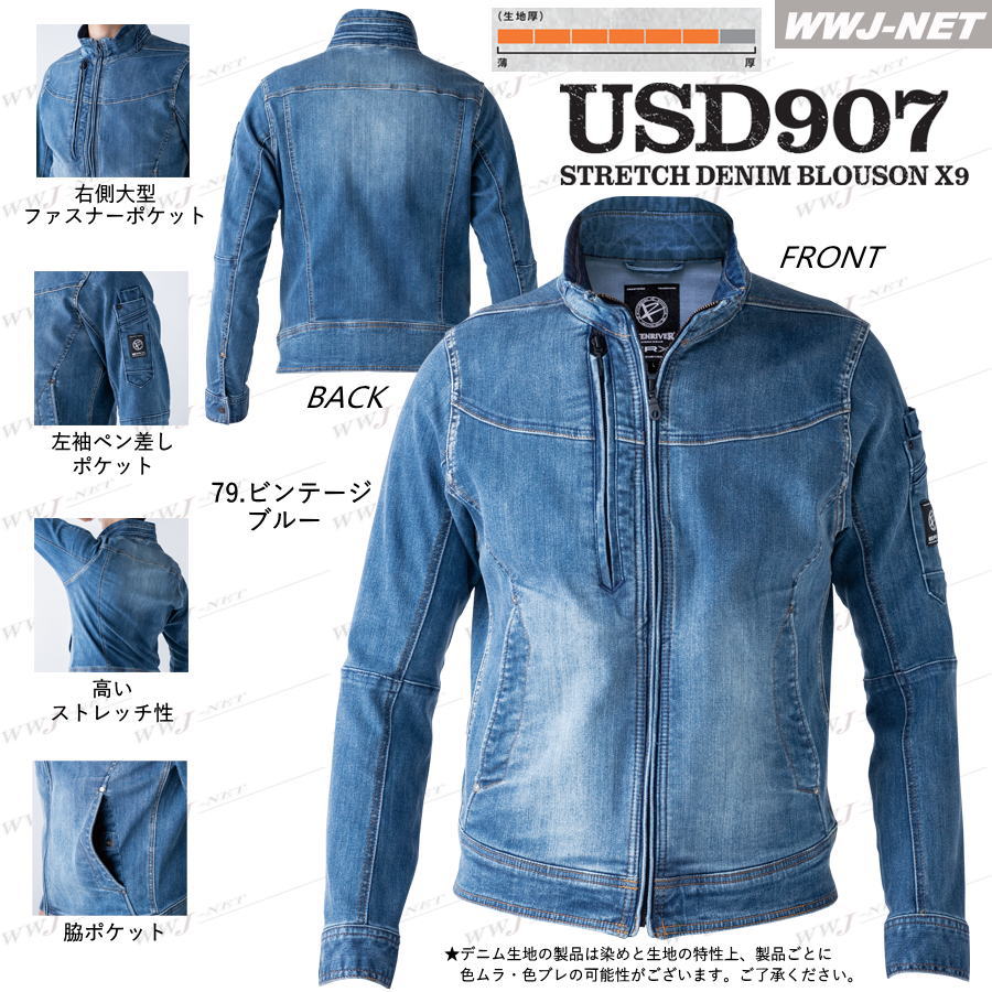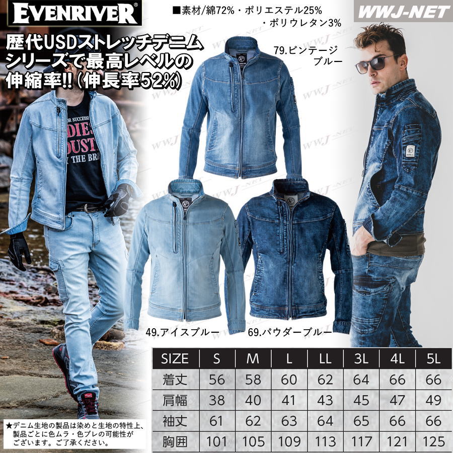 ERUSD907 長袖 ストレッチデニムブルゾン erusd907
