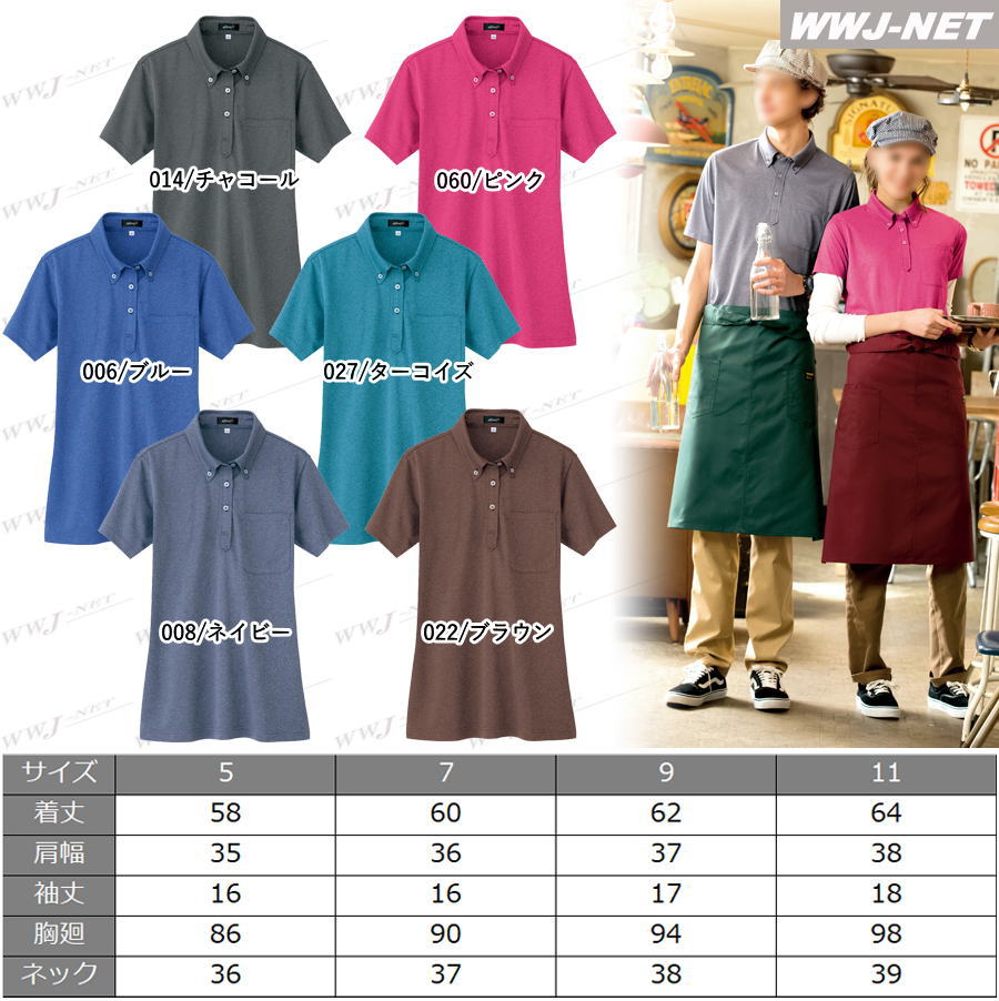 AZ10603L 半袖レディースボタンダウンポロシャツ az10603l